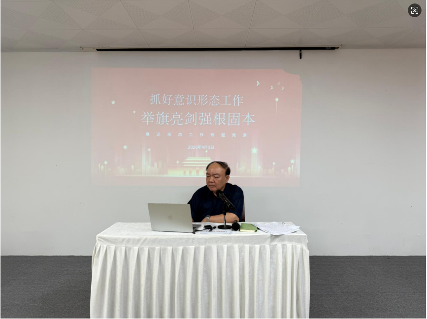 2025年4月15日,外国语开元网页版党委开展意识形态教育专题党课。开元网页版党委书记姚凯雄以“抓好意识形态工作,举旗亮剑强根固本”为主题给全体党员教师讲授专题党课。
