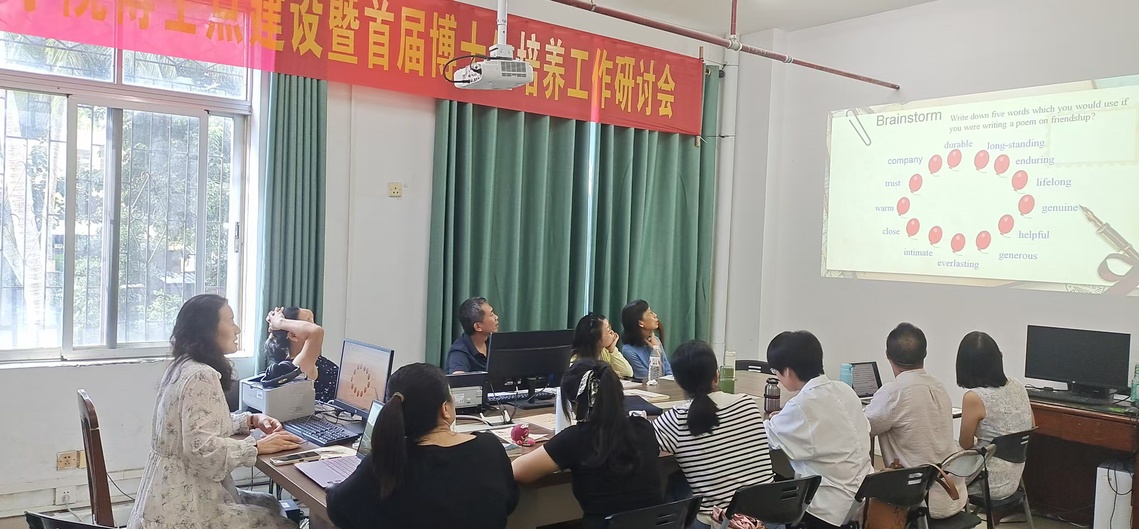 本次活动以“聚焦评估、优化教学”为主题,围绕评估期间授课内容开展了深入的集体备课与教学研讨。在普本课程研讨环节,庄翠娟老师首先对《全新版大学高阶英语(一)综合教程》第一单元前半部分进行了系统说课,从单元教学目标、学生学习目标、教学重难点到课时分布都作了详尽阐述。随后,辛婉莹老师承接该单元后半部分,重点展示了精读环节的教学设计,包括复杂句子结构解析、重点词汇教学等内容,体现了扎实的语言教学功底。