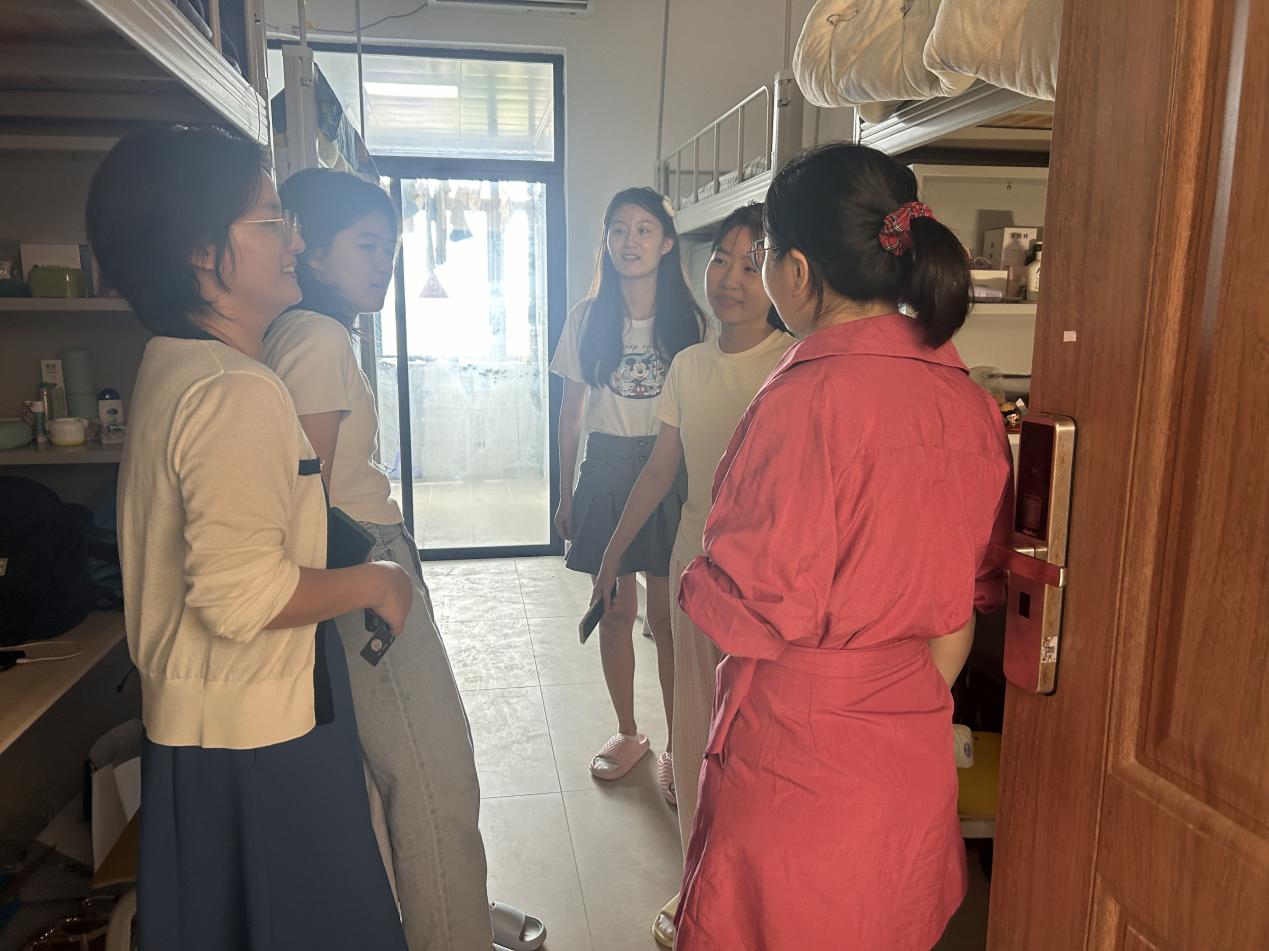 走访过程中,李雯副院长、刘佳老师与新生们进行了亲切交流,细致询问了同学们入学后的学习生活与新宿舍环境的适应情况,耐心解答了大家提出的问题,并鼓励新生们尽快调整状态,融入新的集体生活。