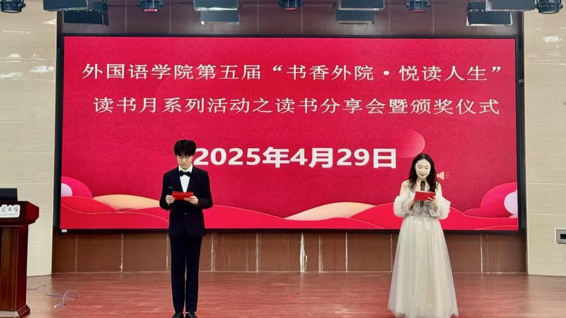 为深入贯彻全民阅读理念,激发广大学生的阅读热情,2025年4月29日,海南师范大学外国语开元网页版在外语楼110报告厅举办读书月系列活动颁奖典礼。本次活动旨在表彰在过去一段时间里,积极参与各类读书活动、热爱阅读的优秀个人与团体,同时进一步营造书香氛围。