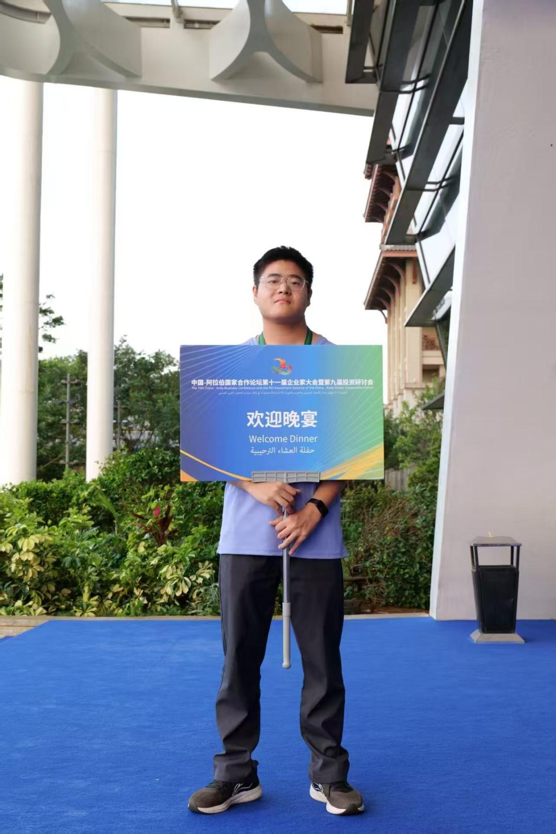 2024级英语6班的寇永臻表示,很荣幸能作为中阿企业家大会的志愿者,参与接机、展馆服务以及陪同外宾考察洋浦的工作。在接机时,他热情地迎接每一位外宾,用微笑和礼貌的问候缓解他们的旅途疲惫。在摩洛哥展馆,他积极协助工作人员,为外宾介绍展品,解答疑问,见证了中摩两国在经济、文化等领域的深度交流。前往洋浦考察的途中,他更是感受到了外宾对中国发展的浓厚兴趣,他们对中国的港口建设、产业发展等提出了诸多问题,他也从他们的话语中了解到了阿拉伯国家的商业理念和文化特色。这次志愿者经历不仅提升了他的沟通能力和应变能力,更让他深刻体会到了中国与阿拉伯国家之间友好合作、互利共赢的深厚情谊,也让他明白了作为志愿者在促进国际交流中的重要角色,未来他定会珍惜每一次这样的机会,为文化交流贡献更多力量。
