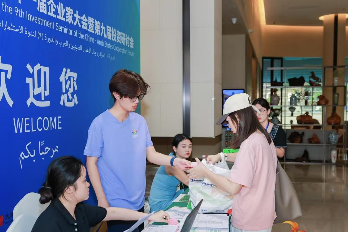 2021级英语6班的王渊乐表示,在本次中阿企业家大会暨第九届投资研讨会上,她是制证组的一员,负责协助来宾完成签到流程,并在会场内提供英文指引。大会当天,第一缕晨光刚透进会场时,大家便已到达自己负责的岗位。面对络绎不绝的中外来宾,她们组的分工明确:有人核对信息、有人分发资料、有人用英语解答嘉宾提问。整个过程中,她深刻体会到语言桥梁的力量,也感受到团队合作的凝聚力。作为一名大四志愿者,能够与学弟学妹们并肩工作,既是一种责任,更是一种激励。未来,她也将继续用专业与热情服务社会。