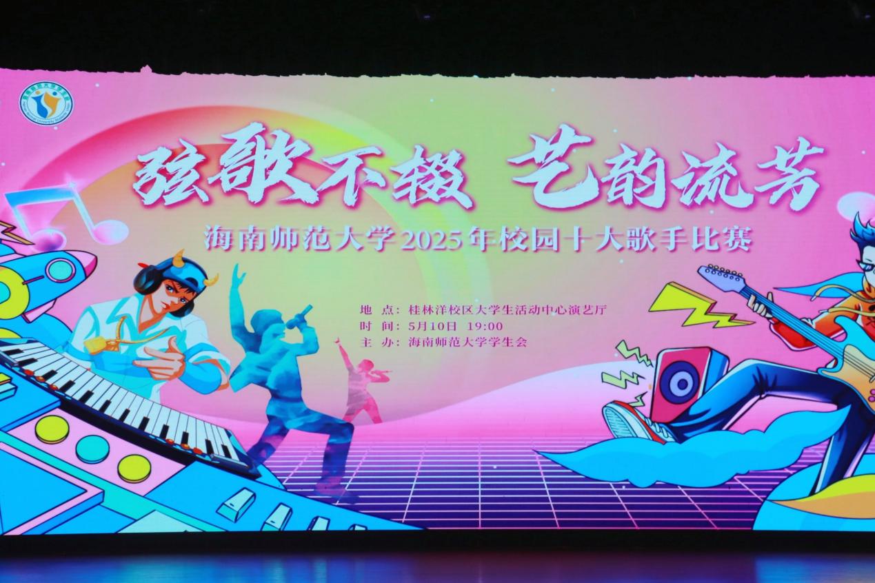 为深入贯彻党的二十大精神,推动校园精神文明建设,丰富校园文化生活,充分展示我校学生积极向上的健康风貌,弘扬时代精神,激发青春激情,营造良好的艺术氛围。2025年5月10日19时,海南师范大学“弦歌不辍,艺韵流芳”2025年校园十大歌手比赛于桂林洋校区大学生活动中心演艺厅顺利举行。