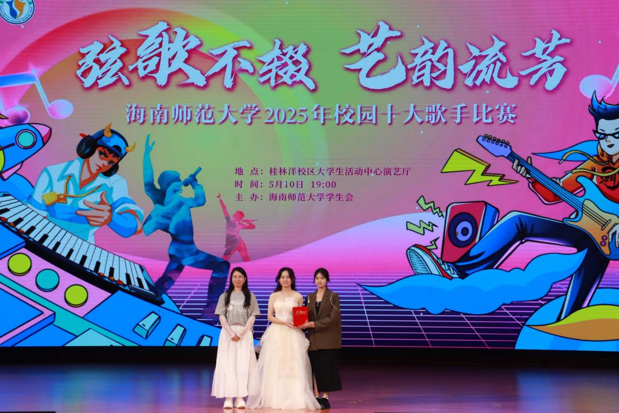热烈祝贺2023级英语5班李珈伊伊同学和2024级英语1班李帆同学在海南师范大学“弦歌不辍,艺韵流芳”2025年校园十大歌手比赛中荣获二等奖及最佳人气奖;2023级英语1班赵婧屹同学荣获优秀奖!