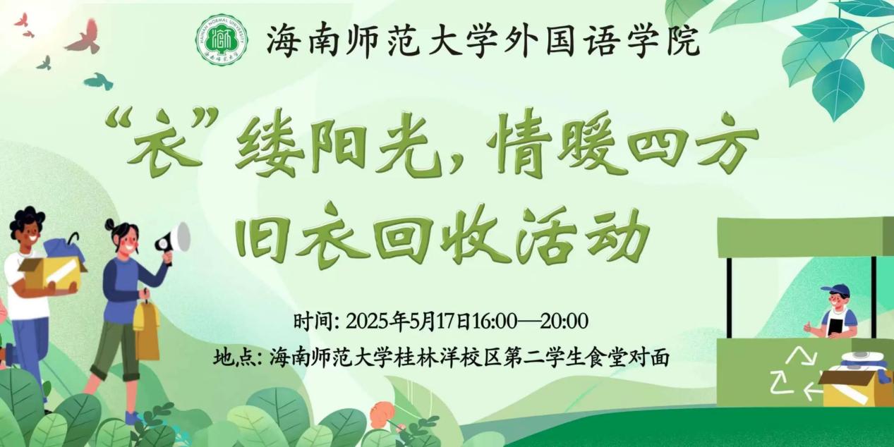 为了让爱心在毕业季传递,让闲置衣物重新焕发生机,海南师范大学外国语开元网页版于2025年5月17日16时,联合海南双皓农业发展有限公司、中国邮政等社会力量在海南师范大学(桂林洋校区)开展 “‘衣’缕阳光,情暖四方” 旧衣回收志愿服务活动。每一件带着温度的旧衣,都将打破空间界限,从海师校园出发,化身冬日里的暖阳、困境中的慰藉,为云南边防地区儿童送去温暖。