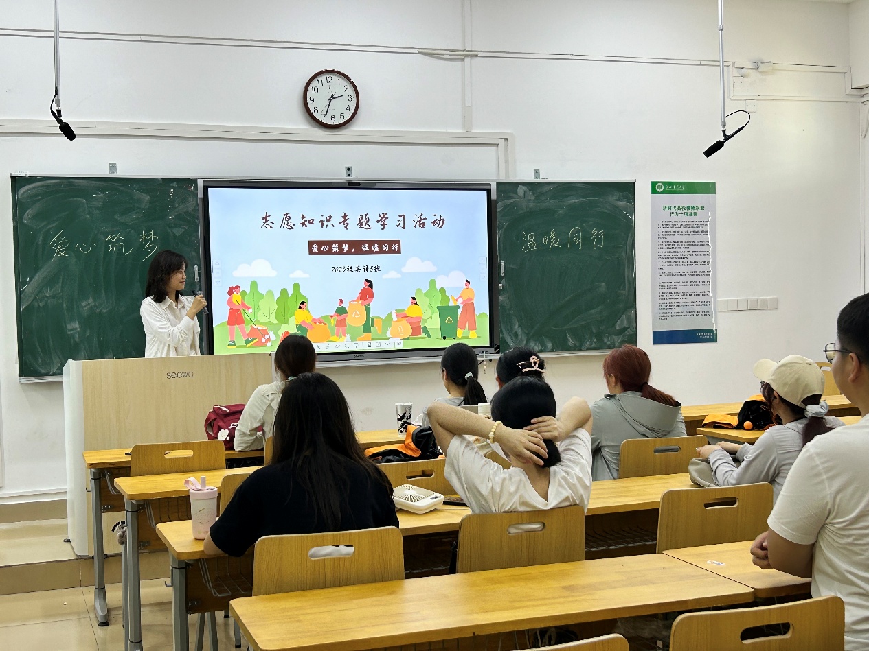 2023级英语5班举办“学志愿知识”主题班会,通过视频学习、案例分析等形式,立足英语专业特色探讨“语言赋能志愿”路径:支教用英语点亮乡村儿童求知梦,社区服务以双语搭建文化桥梁。班会上,同学们围绕“专业+志愿”建言献策,筹划组建双语志愿队服务国际赛事、开设英语公益角,践行“以语言为翼,让爱心远航”理念。活动凝聚共识,未来将依托英语专长,在志愿服务中贡献专业力量,让青春在志愿奉献中绽放光彩。