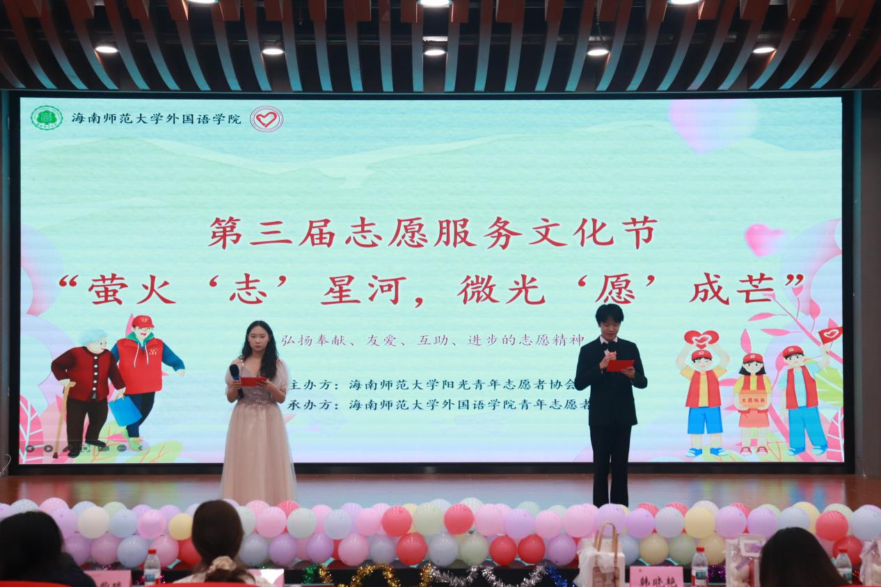 为深入学习宣传习近平新时代中国特色社会主义思想和党的二十大精神,贯彻落实习近平总书记对学雷锋活动的重要指示精神,鼓励同学们积极投身志愿服务活动,弘扬奉献、友爱、互助、进步的志愿精神,展现青年志愿先锋风采。2025年5月24日19时,海南师范大学外国语开元网页版第三届“萤火‘志’星河,微光‘愿’成芒”志愿服务文化节于桂林洋图书馆一楼报告厅圆满举办。