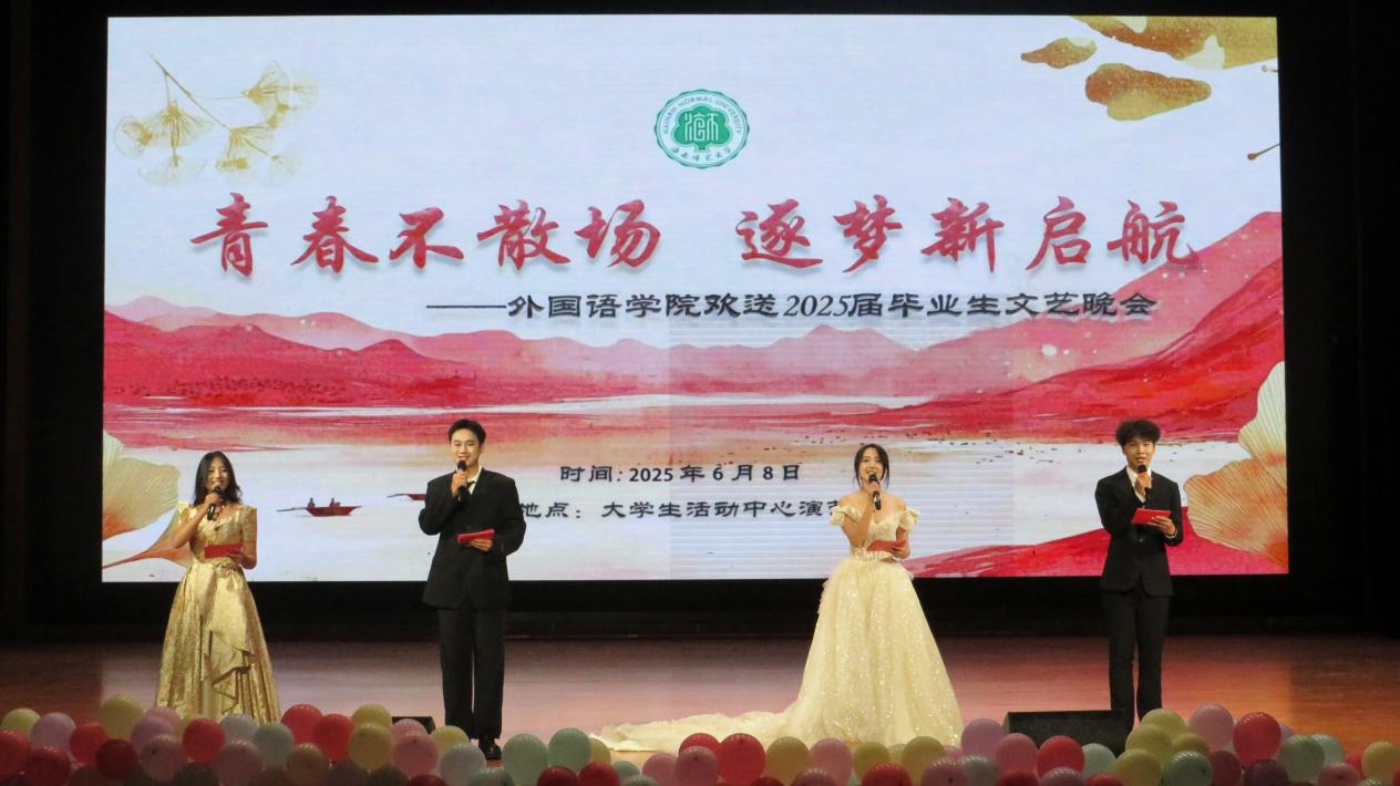 2025年6月8日19时30分,海南师范大学外国语开元网页版 “青春不散场,逐梦新启航” 欢送2025届毕业生文艺晚会,在大学生活动中心演艺厅顺利举办。