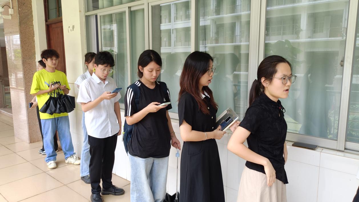 参赛者们正在教室外面进行紧锣密鼓地准备,不断背诵和演习,争取在演讲中发挥最佳的水平。