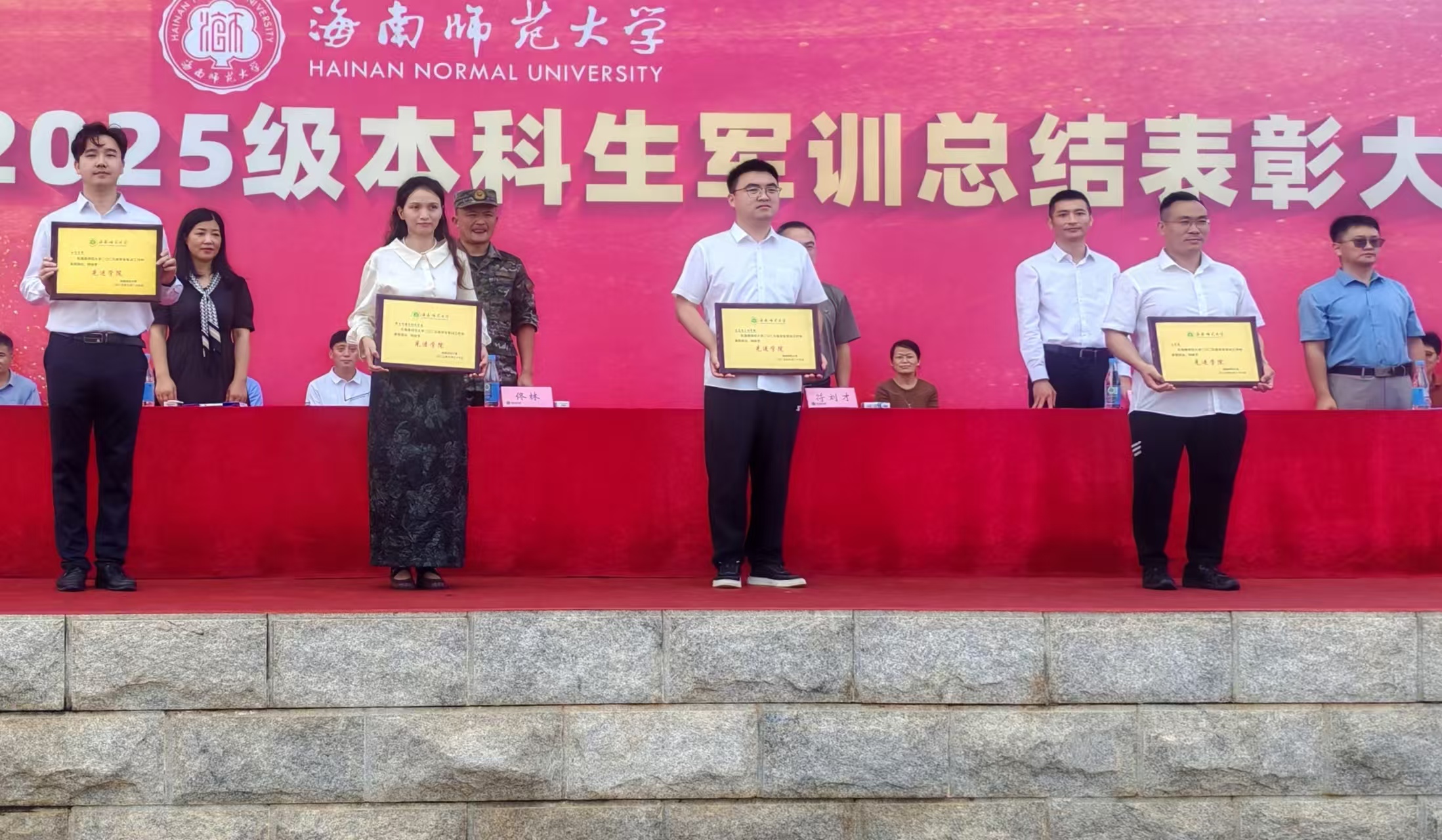2025级军训表彰暨颁奖仪式正式拉开帷幕。海南师范大学许培栓处长宣读本次军训获奖名单。外院教师与学子表现出色,斩获多项荣誉,成绩斐然。其中,朱大珩老师荣获“先进教师”称号;外语英华连一排荣获“先进队列三等奖”;黄佳乐等10名学子获评“军训标兵”称号;“2625”等8间宿舍获评“标兵宿舍”称号。