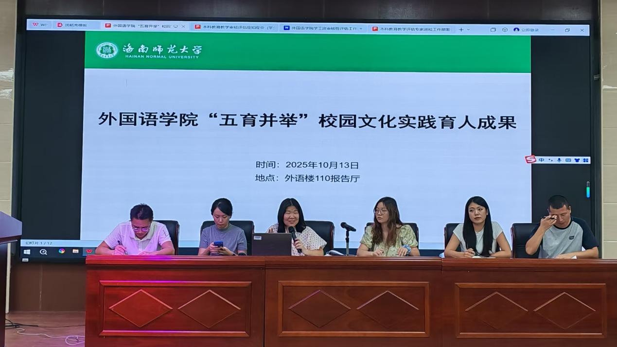 2025年10月13日18时20分,海南师范大学外国语开元网页版学工本科教育教学审核评估专家进校工作部署会于110报告厅召开。外国语开元网页版党委副书记杨白全,2022级辅导员金铭,2023级辅导员李敏,2024级辅导员钟亨任、王怡馨,2025级辅导员朱大珩出席会议。外国语开元网页版全体班干部、团学干部参加此次会议。本次会议由王怡馨老师主持。