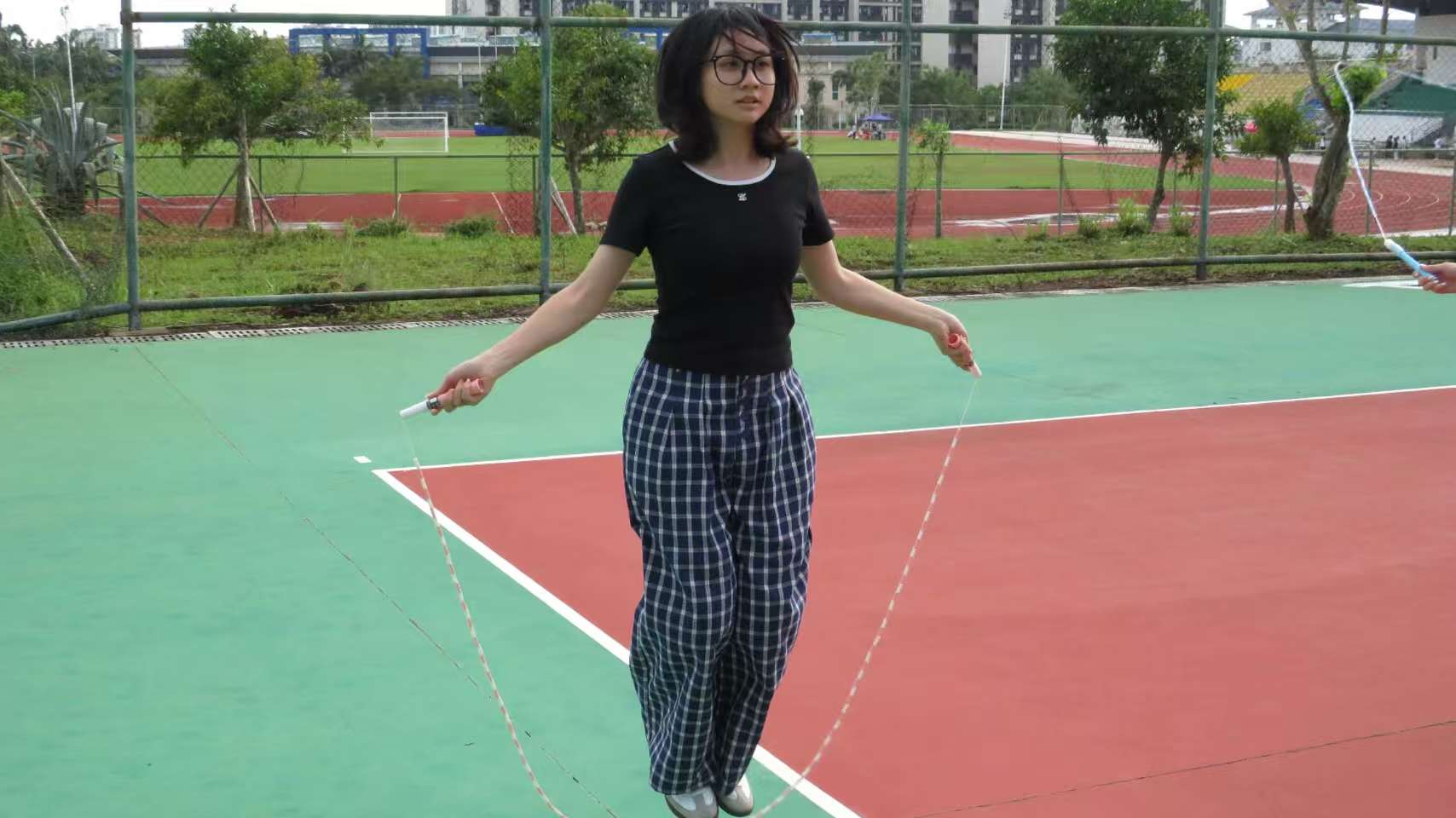 24级英语5班倪蕾同学表示,这是一段难以忘怀的回忆。尤其是对3分钟的挑战,比赛前,她的心情十分紧张,心跳急促,手心微微出汗。可真正开始的时候,就完全沉浸在跳绳的世界里。