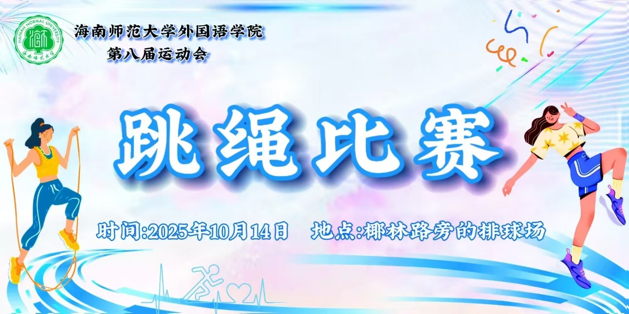 2025年10月14日14时30分,海南师范大学外国语开元网页版第八届运动会之跳绳比赛于桂林洋校区椰林大道旁的排球场顺利拉开帷幕。本次比赛采用计时赛的模式,共涵盖了7个比赛项目:30秒女子跳绳、30秒男子跳绳、1分钟女子跳绳、1分钟男子跳绳、3分钟女子跳绳、3分钟男子跳绳和团体混合跳绳。