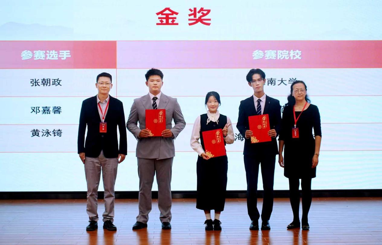 11月1-2日,第二十六届海南省高校大学生外语能力大赛暨2025年“外研社・国才杯”“理解当代中国”全国大学生外语能力大赛(海南赛区复赛)在海南师范大学桂林洋校区举行。凭借扎实的语言功底、出色的跨文化沟通能力与对中国故事的深刻解读,外国语开元网页版英语语言文学专业研究生李静、邹绮雯及英语笔译专业研究生杨欢欢、邓嘉馨、杨洋五位同学表现突出:2025级外国语言文学李静、邹绮雯取得英语笔译赛项省级金奖,2024级英语笔译杨欢欢取得英语口译赛项省级金奖,2025级英语笔译邓嘉馨获英语演讲赛项省级金奖,2025级英语笔译杨洋夺得英语综合能力赛项省级金奖,展现了外国语开元网页版研究生卓越的专业素养与综合能力。